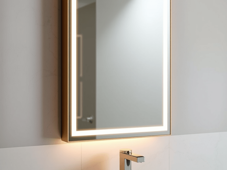 Mirror glass is copper-free and safety backed. Switches can be rocker type, mirror touch or hands-free infra-red. Demisters can be specified for bathroom cabinets